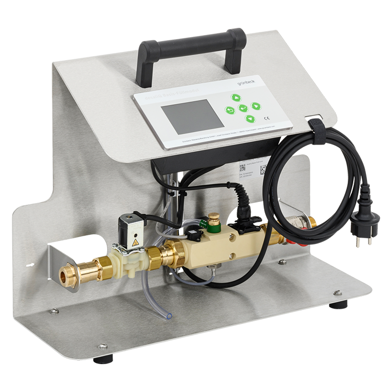 Per garantire un flusso ottimale dell'acqua nel circuito dell'acqua di riscaldamento, Grünbeck consiglia di utilizzare acqua demineralizzata per il riempimento iniziale. La collaudata cartuccia a letto misto desaliQ:MB9 è ideale per il riempimento iniziale. Con il nuovo modulo di riempimento di base desaliQ è più conveniente che mai! Il modulo di riempimento di base desaliQ non solo assicura un monitoraggio e un controllo ottimale del processo di riempimento garantendo una qualità dell'acqua di riscaldamento costante, ma lo fa anche da solo! Il controller intelligente interrompe automaticamente il processo di riempimento quando la cartuccia ha raggiunto la sua capacità.